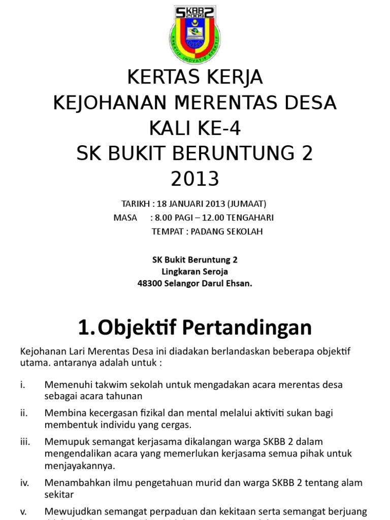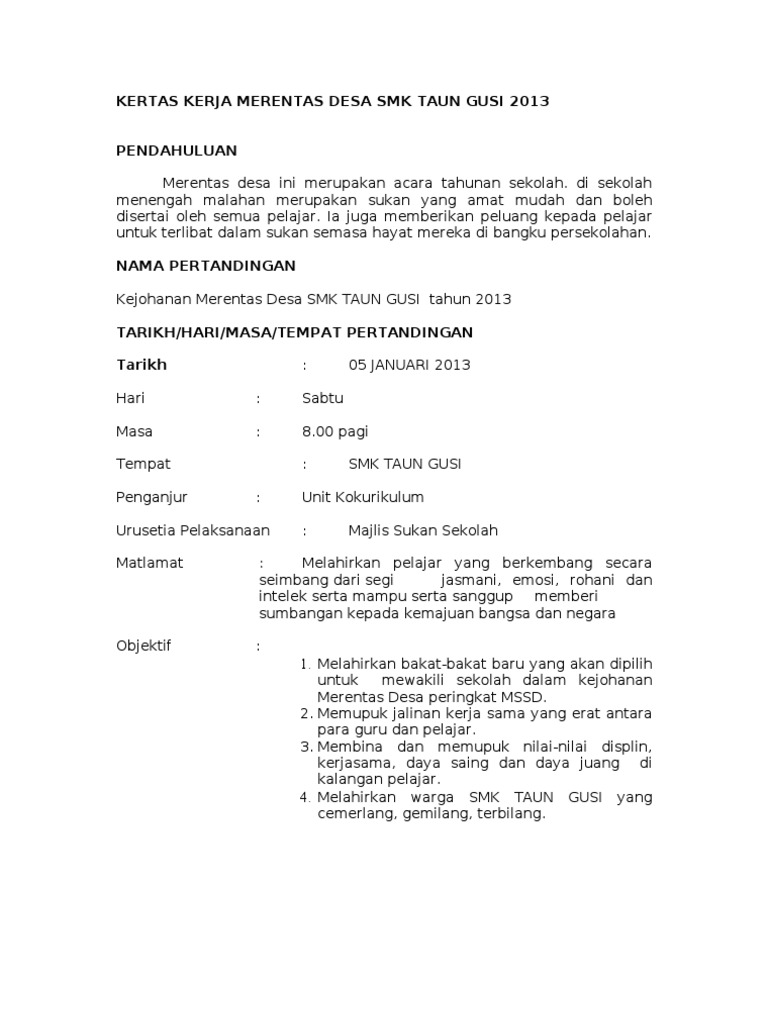 Contoh Kertas Kerja Merentas Desa Peringkat Sekolah